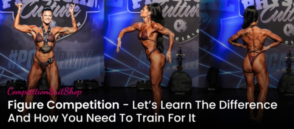 - Figure competitions –These competitions have been around longer than a bikini. To compete, you need to have more muscle definition and lower body fat, compared to bikini competitors. Like bikini competitions, you need to appear confident on stage wearing a perfectly fitting figure competition suit.